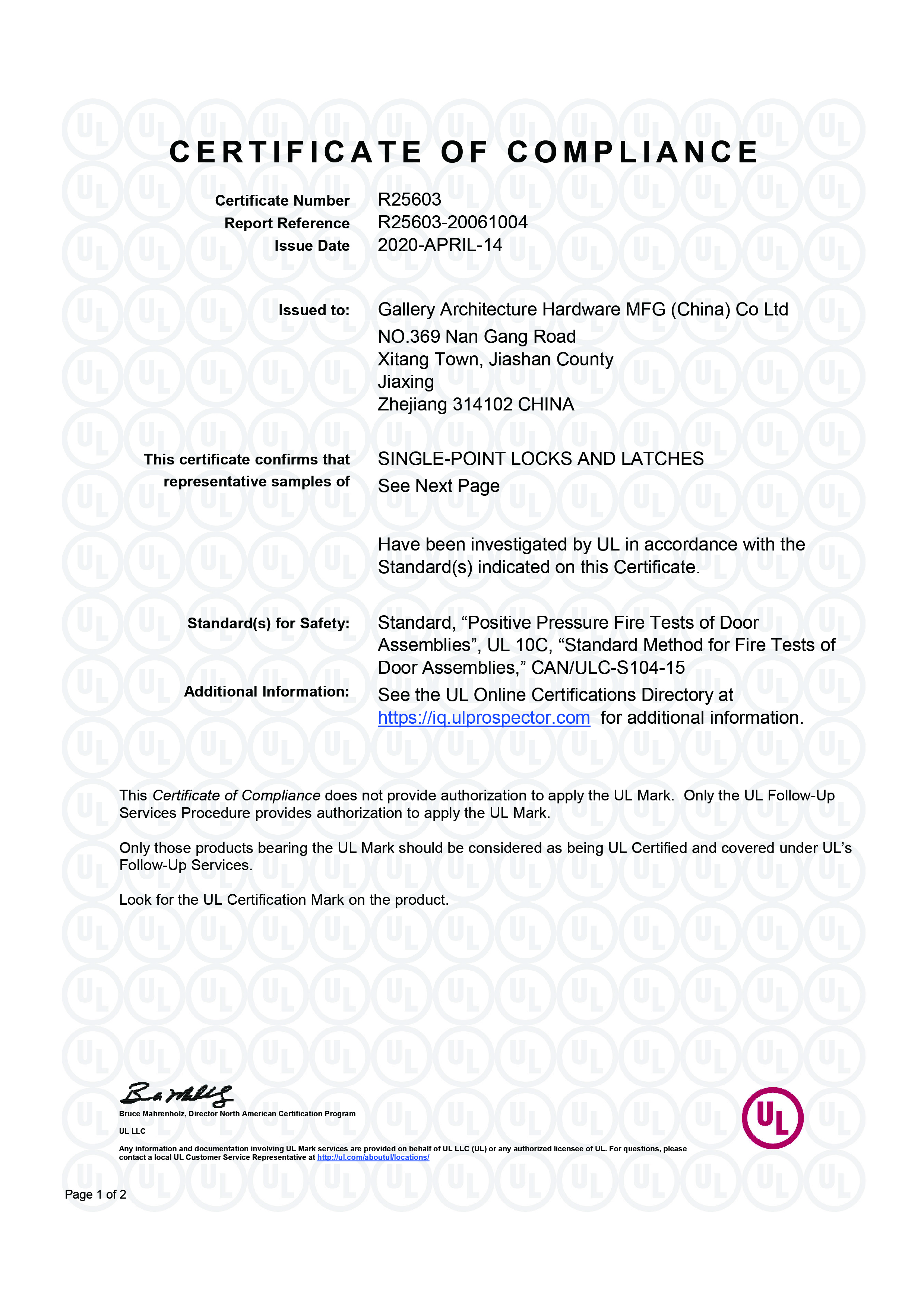 浙江堅迪五金制造有限公司始建于 1995 年。自 2003 開始,公司致力于高標準商業(yè)鎖的研發(fā)工作,并于 2006 及 2007 年,8700 插芯鎖系列獲得美國國家標準 ANSI A 156.13-2005 一級、ANSI A 156.2-2003 二級和美國 UL 10C3 小時防火測試認證。自 1998 年以來,公司不斷提升產(chǎn)品和客戶服務(wù)品質(zhì),并獲得了 ISO 9001 的認證。